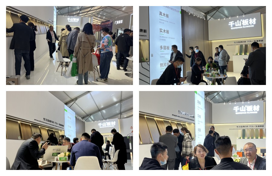 此次展會(huì),千山以“高端家具板”為主題,打造簡(jiǎn)約、有設(shè)計(jì)感的體驗(yàn)場(chǎng)館。其中,家具板新品真木板、實(shí)木板、同色室內(nèi)門備受關(guān)注,吸引眾多觀展客戶圍觀咨詢。
