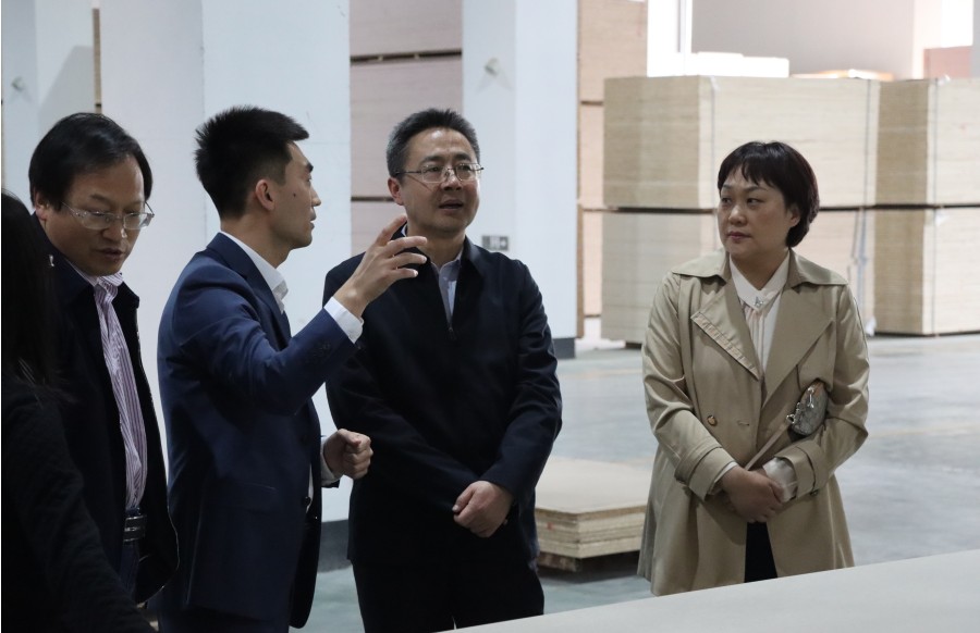 領(lǐng)導(dǎo)一行先后參觀了千山新建自動(dòng)化生態(tài)板生產(chǎn)車間、高標(biāo)準(zhǔn)成品庫(kù)、國(guó)內(nèi)先進(jìn)的浸漬膠膜紙飾面人造板自動(dòng)化壓貼生產(chǎn)線,對(duì)工廠先進(jìn)化、設(shè)備智能化、板材無醛化,給予了充分肯定。