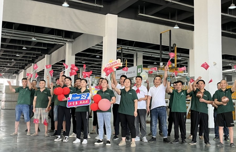 “祝千山25周年生日快樂(lè)”、“時(shí)尚潮派衣柜 就選千山板材”的嘹亮口號(hào)響徹活動(dòng)現(xiàn)場(chǎng),大家意氣風(fēng)發(fā),自信昂揚(yáng),展現(xiàn)了千山人新時(shí)代踔厲奮進(jìn)、拼搏進(jìn)取的精神。