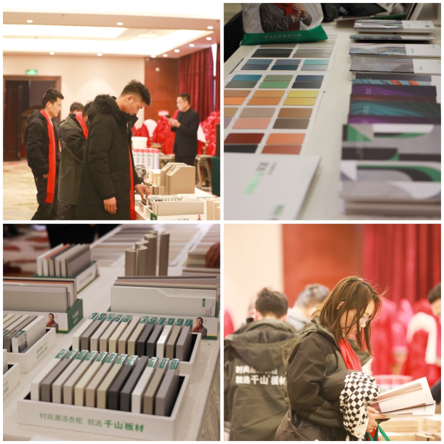活動現(xiàn)場設置了產(chǎn)品、樣冊、花色展示區(qū),讓參會嘉賓們零距離感受千山板材的產(chǎn)品魅力,全方位了解千山板材的品類優(yōu)勢和產(chǎn)品優(yōu)勢。