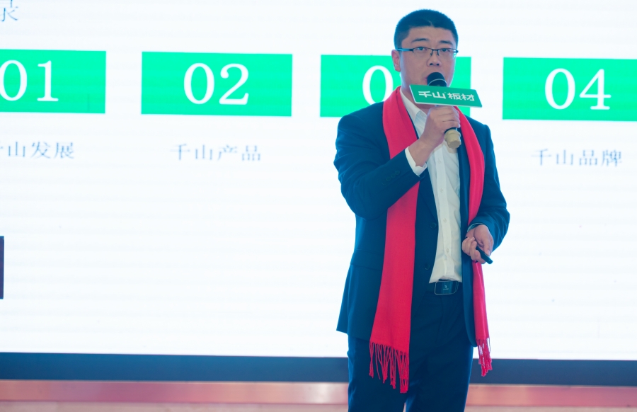 千山板材常德運營中心總經(jīng)理肖波致辭。肖總鋪開產(chǎn)品升級迭代的大背景,給大家分享了千山板材在常德市場的發(fā)展動態(tài)以及接下來的奮斗目標。