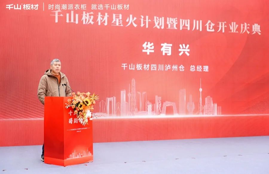 千山板材優(yōu)秀經(jīng)銷商代表,四川瀘州倉總經(jīng)理華有興上臺致辭。華總分享到,在集團(tuán)總部和區(qū)域合作伙伴的支持與努力下,千山板材在瀘州地區(qū)的市場占有率逐年攀升,品牌影響力日益增強(qiáng)。未來,將繼續(xù)加強(qiáng)合作,共同應(yīng)對市場挑戰(zhàn),實現(xiàn)互利共贏。