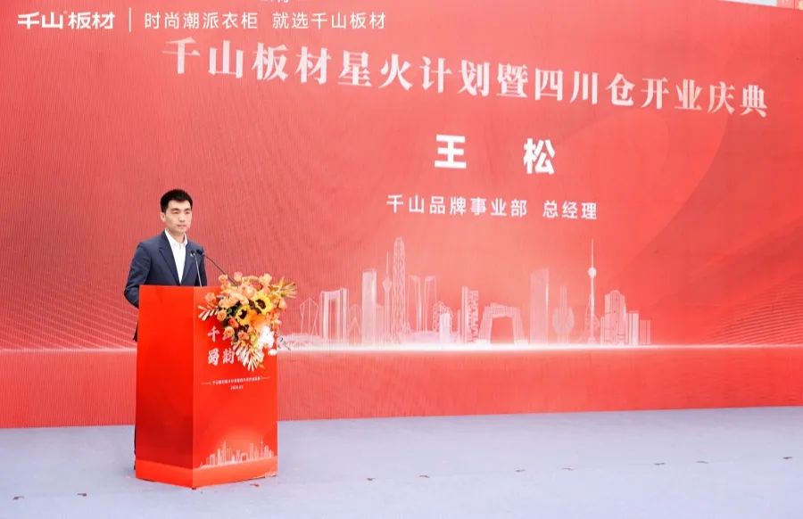 千山品牌事業(yè)部總經(jīng)理王松發(fā)表致辭。王總表示,四川倉的開業(yè),是繼山東倉之后,千山板材發(fā)展歷程中又一重要的里程碑,也是千山板材在四川發(fā)展的全新起點。千山將以此為契機(jī),加強(qiáng)與四川區(qū)域所有合作伙伴的溝通與合作,實現(xiàn)品牌和銷量的雙提升。