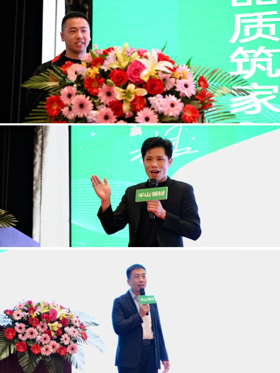 作為千山板材的親密合作伙伴,三維家高永春先生、 安雅居柜門劉芳桃先生、極東設(shè)備袁鵬先生也受邀來(lái)到了活動(dòng)現(xiàn)場(chǎng),并分別介紹了公司產(chǎn)品概況及服務(wù)優(yōu)勢(shì),表示將加強(qiáng)與千山的密切合作,共拓共贏。