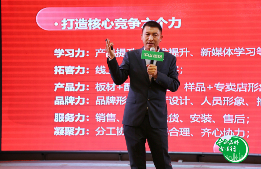 千山板材區(qū)域經(jīng)理高平紅對千山的成長歷程、品牌升級戰(zhàn)略、產(chǎn)品優(yōu)勢進行詳細介紹。千山板材在全國已擁有1000+品牌專賣店,快速發(fā)展的背后,是千山與全國合作伙伴的緊密協(xié)作、攜手共進。