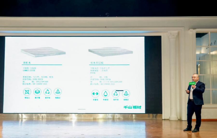 千山板材區(qū)域經理盧興煒帶領大家回顧了千山26年的發(fā)展歷程。從單一生態(tài)板到多品類板材,再到板材、印刷浸膠、全屋定制等為一體的全產業(yè)鏈品牌運營企業(yè),千山不斷探索、學習、調整,從有到優(yōu),進入了高質量發(fā)展的快車道。