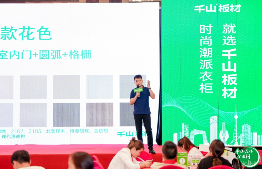 市場競爭瞬息萬變,產(chǎn)品思路尤為關(guān)鍵。千山板材西安倉肖經(jīng)理、門墻柜產(chǎn)品負(fù)責(zé)人代總,分別從家裝設(shè)計(jì)趨勢、設(shè)計(jì)案例、門墻柜一體化應(yīng)用等方面詳細(xì)闡述了西安倉的產(chǎn)品競爭優(yōu)勢。