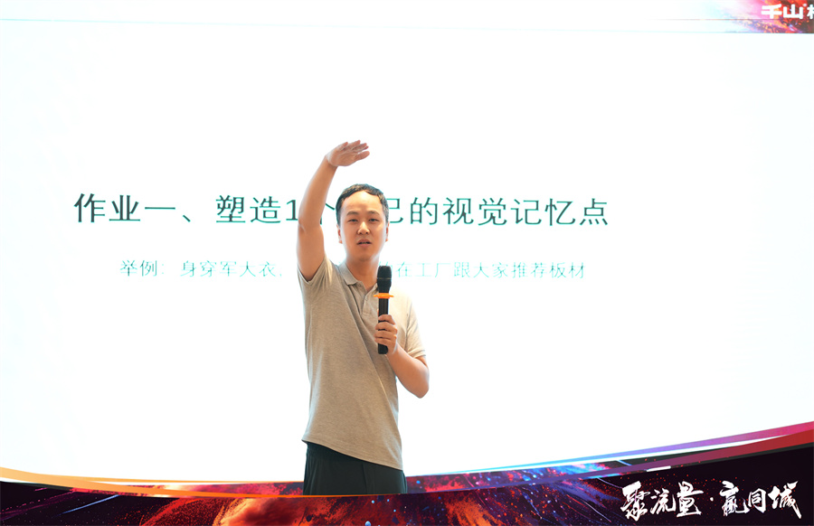 2024年千山著重發(fā)力線上渠道,通過抖音同城獲客引導經(jīng)銷商伙伴們突破自我,入局賽道,通過持續(xù)的線上轉(zhuǎn)化促進業(yè)績增長。千山集團品牌運營中心于昆總監(jiān)為大家解讀了“板材生意”增長的“新渠道、新營銷、新增量”,通過多樣化的營銷策略,打造線上社媒傳播陣地,最終賦能終端。