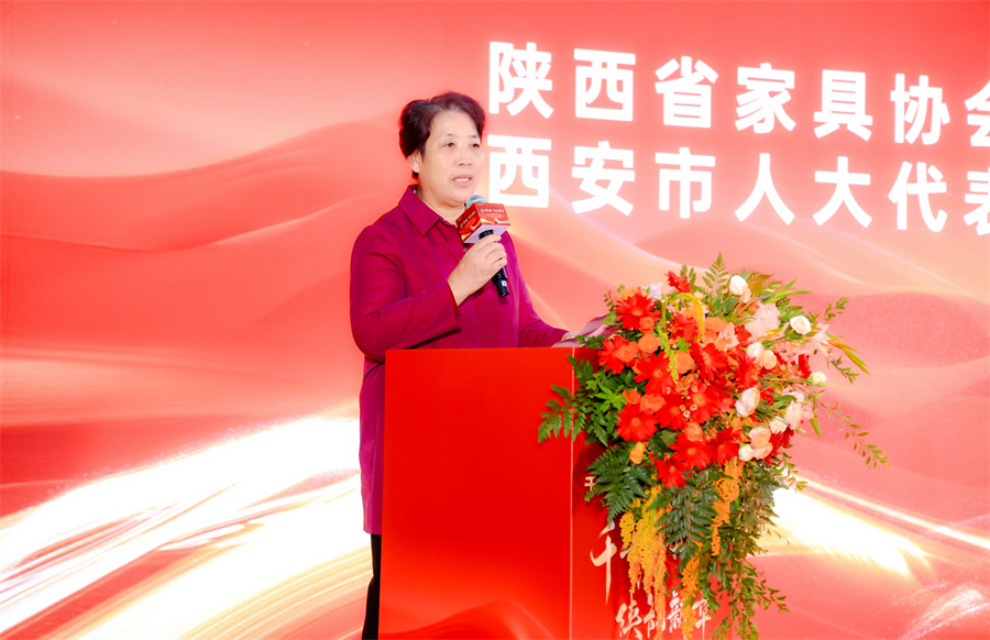 陜西省家具協(xié)會會長靳喜鳳女士上臺致辭。靳會長為陜西倉送上了開業(yè)祝福并表示,千山板材陜西倉是對家具產(chǎn)業(yè)鏈優(yōu)化和服務(wù)升級的積極探索,是連接消費(fèi)者與優(yōu)質(zhì)家具產(chǎn)品的橋梁,將為陜西家具市場注入新的活力。