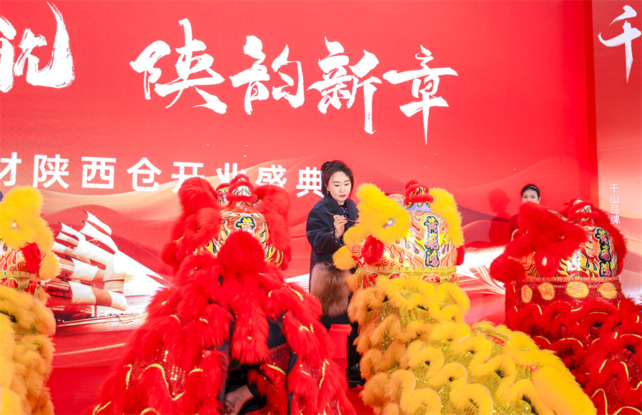 千山集團(tuán)馬彥慶董事長、劉玉蓮副董事長共同為祥獅點(diǎn)睛,期待歡騰的祥獅為陜西倉摘得好彩頭,共同祝愿陜西倉的蓬勃發(fā)展。