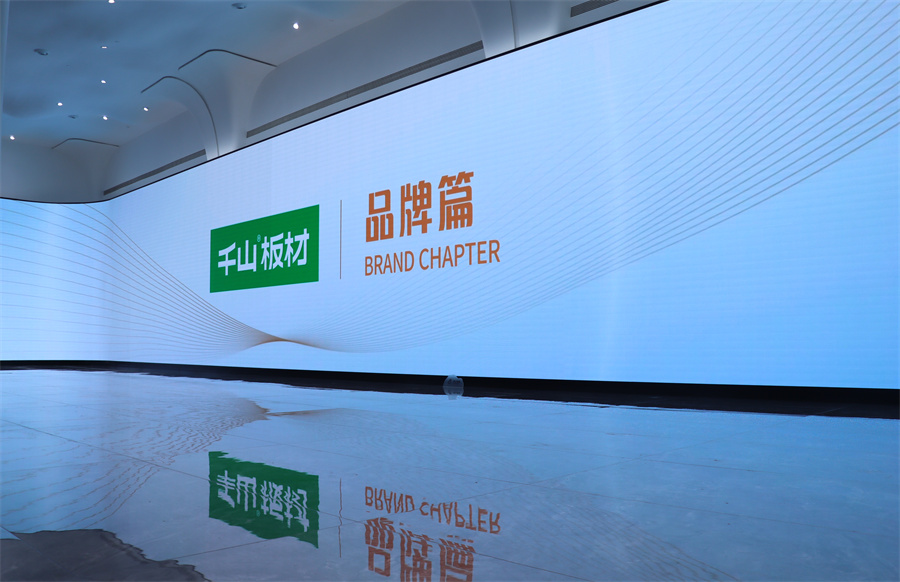 穿過正門大堂左側(cè),迎面而來的是千山集團(tuán)文化展示區(qū),更是集團(tuán)砥礪前行的生動敘事。超大LED屏高3.8m、寬27m,是目前臨沂最大的LED屏幕。宣傳片《千山筑夢》講述發(fā)展的故事,傳遞文化的自信,以集團(tuán)全產(chǎn)業(yè)鏈、品牌、產(chǎn)品三大板塊發(fā)展成果為引線,串聯(lián)起千山過去二十六年的風(fēng)雨輝煌路。