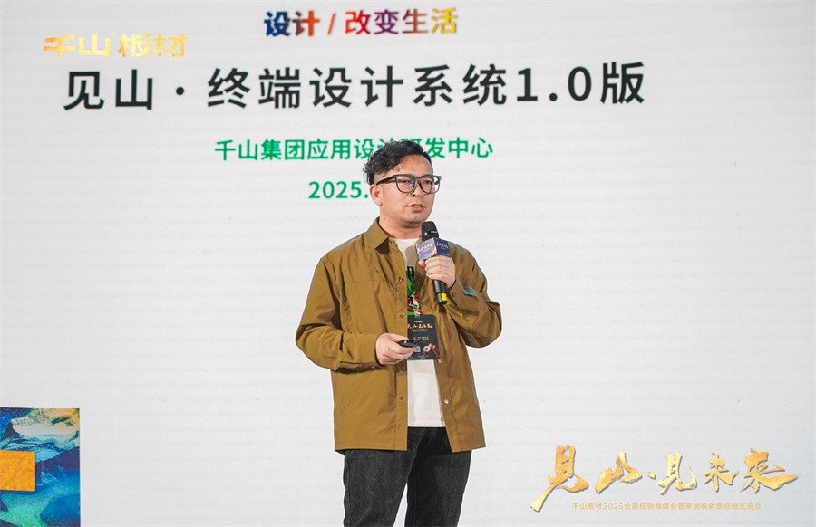 千山應(yīng)用設(shè)計研發(fā)中心朱云周總監(jiān)詳細(xì)闡述了“見山-終端設(shè)計系統(tǒng)1.0版”,基于風(fēng)格邏輯、色彩邏輯、材質(zhì)邏輯打通終端應(yīng)用,確保落地場景的呈現(xiàn)效果,賦能終端來解決客戶需求的痛點問題,從而有效助力經(jīng)銷商的運(yùn)營發(fā)展。