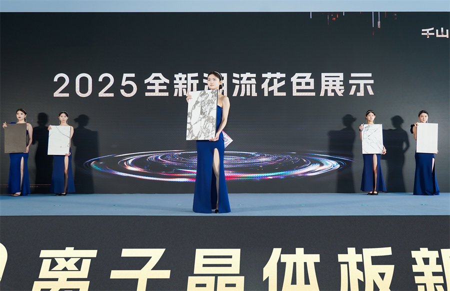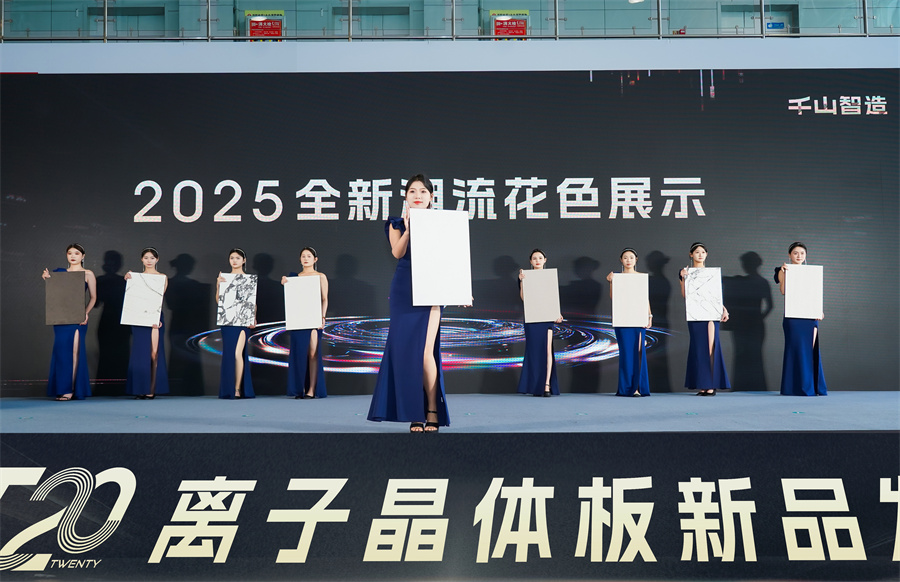 作為本次發(fā)布會(huì)的又一重頭戲,千山板材2025新品花色也成為了眾人矚目的焦點(diǎn),王總揭開其神秘面紗:布紋系列—云錦灰布紋、云錦白布紋,石紋系列—鐵銹紅、輕奢水磨石、白玉洞石、水墨潘多拉、冰紋奢石,數(shù)碼系列—寶格麗白、灰影木、白影木。