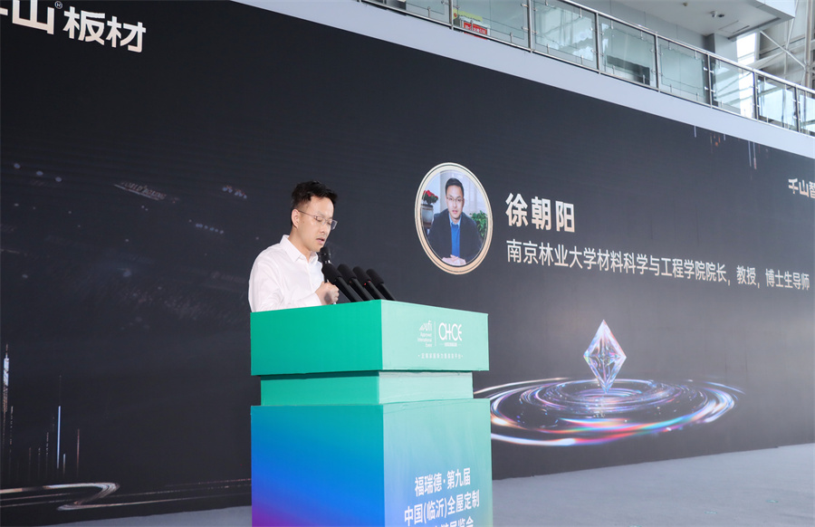 南京林業(yè)大學(xué)材料科學(xué)與工程學(xué)院院長徐朝陽致辭。徐院長表示,千山作為家居板材領(lǐng)域的領(lǐng)航企業(yè),始終秉承“健康、環(huán)保、創(chuàng)新”的理念,以卓越的產(chǎn)品力和市場表現(xiàn)力贏得了消費(fèi)者的信賴。T20離子晶體板是千山與學(xué)院共同研發(fā),不僅延續(xù)了千山板材一貫的高品質(zhì),更在物理性能上實(shí)現(xiàn)了全新的突破。