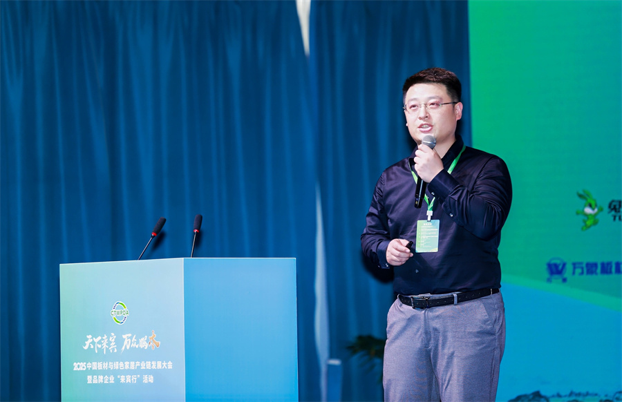 千山板材東南大區(qū)負責人董向陽以《板材品牌綠色產業(yè)發(fā)展之路》為主題,解碼千山的高質量發(fā)展之路。千山以“雙碳”戰(zhàn)略為引領,構建覆蓋全產業(yè)鏈的綠色發(fā)展體系,通過“綠色智造、低碳循環(huán)、價值共生”三大維度,實現(xiàn)產業(yè)升級與生態(tài)效益的雙向突破,打造出具有行業(yè)示范價值的可持續(xù)發(fā)展范式。