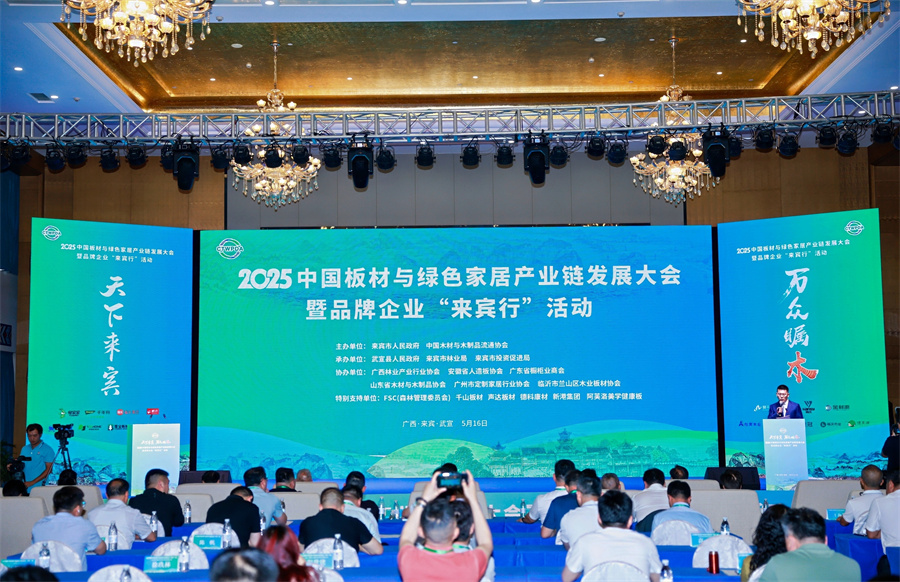 5月15—17日,“天下來賓·萬眾矚木”2025中國板材與綠色家居產業(yè)鏈發(fā)展大會暨品牌企業(yè) “來賓行”活動在廣西省來賓市武宣縣隆重舉行。本次大會由來賓市政府和中國木材與木制品流通協(xié)會共同主辦,大會同步舉行第四屆人造板流通品牌研討會。