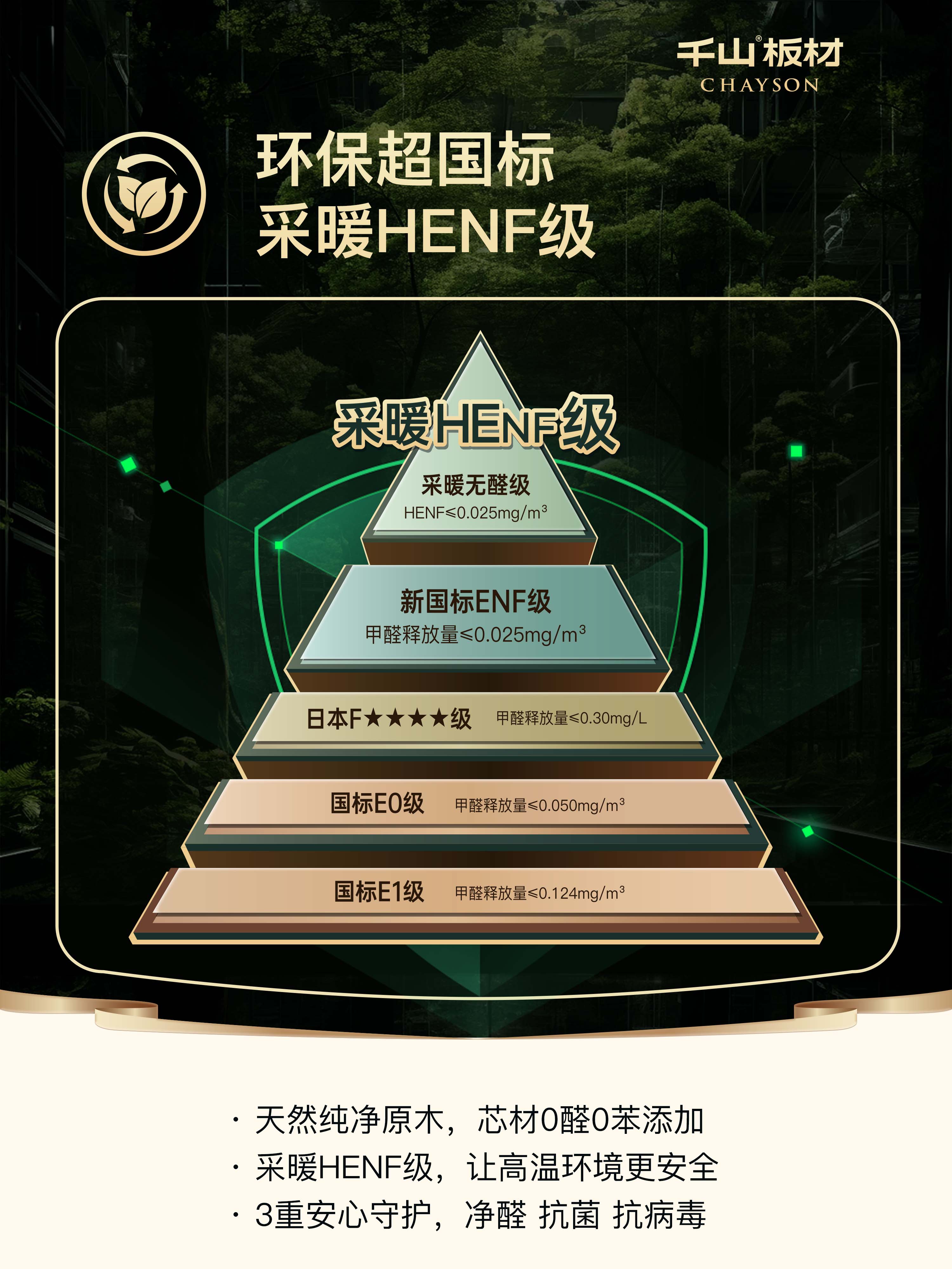 目前千山板材五大核心品類:千山全能板(實木大刨片)、千山實木小刨片、千山多層板、千山原木板(俄羅斯樺木、新西蘭松木、泰國橡膠木)、千山生態(tài)板(香杉木、楊木),環(huán)保均達到采暖HENF級,遠超國標要求。