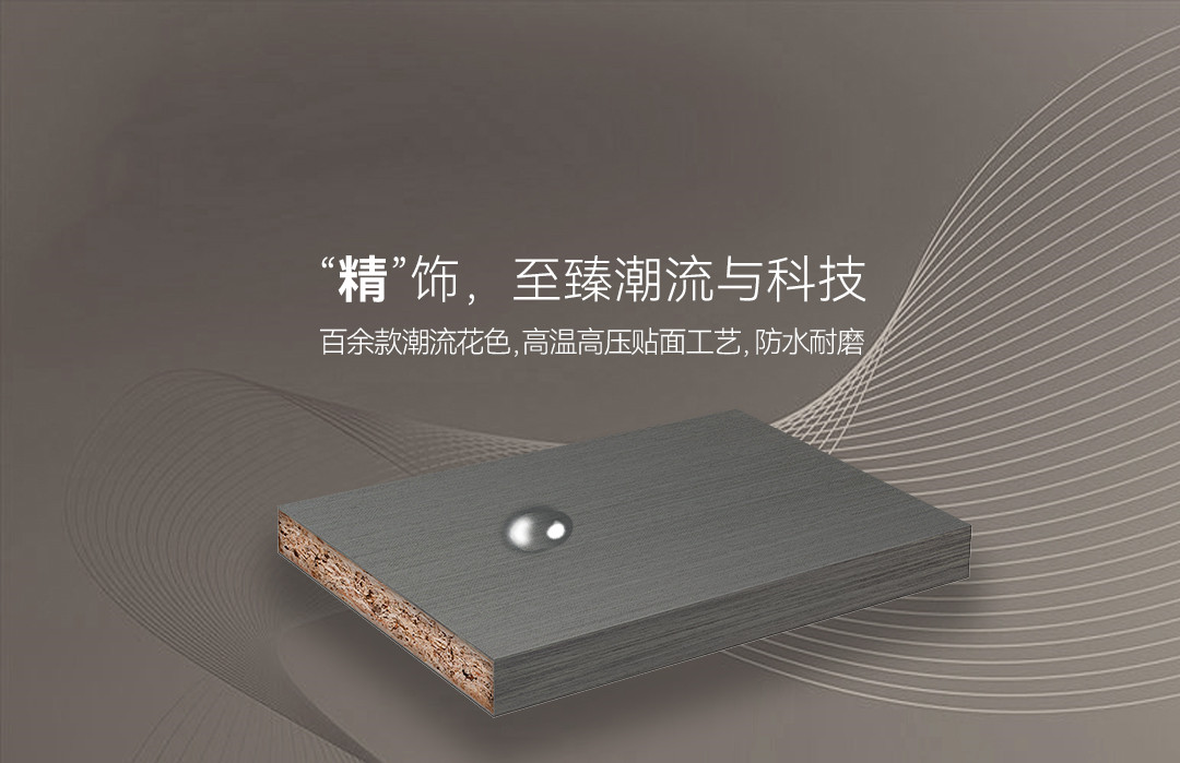 飾面采用高壓底紙、進(jìn)口油墨印刷,成色效果更清晰。百余種潮流花色,滿足不同風(fēng)格需求。2000噸超強(qiáng)壓機(jī)高溫壓貼,30秒超長貼合,表面防水防潮、磨抗劃。