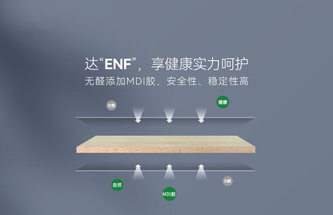 超芯板無醛添加MDI膠,安全性、穩(wěn)定性高,防水性能更佳,板材環(huán)保等級(jí)可達(dá)ENF級(jí),呵護(hù)綠色健康家居生活。
