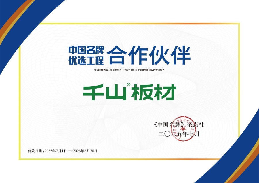 7月23日,千山集團傳來重磅喜訊——憑借卓越的產(chǎn)品品質(zhì)、深厚的品牌積淀與領(lǐng)先的行業(yè)影響力,千山板材成為中國名牌優(yōu)選工程合作伙伴。這一榮譽不僅是對千山多年來堅守品質(zhì)、創(chuàng)新發(fā)展的高度肯定,更標志著千山發(fā)展邁入全新階段。 中國名牌優(yōu)選工程是新華社《中國名牌》支持品牌強國建設(shè)的專項服務(wù),旨在推動中國品牌發(fā)展,