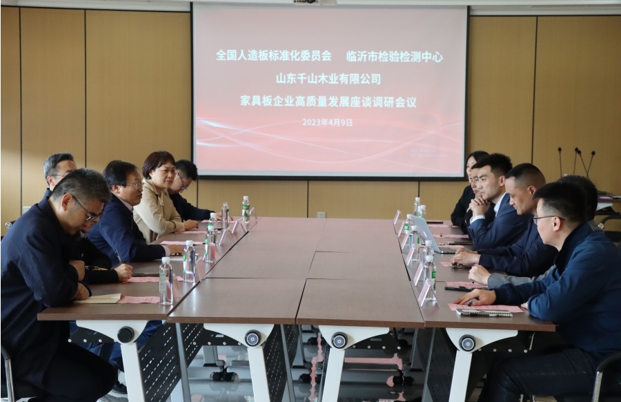 4月9日下午,全國人造板標準化技術委員會副主任兼秘書長研究員段新芳,副秘書長李曉玲,臨沂市檢驗檢測中心黨組書記、主任劉愛友,黨組成員、副主任黃波,市檢驗檢測中心質檢所所長竇興霞及相關專業(yè)技術人員蒞臨千山木業(yè)進行調研。 領導一行先后參觀了千山新建自動化生態(tài)板生產車間、高標準成品庫、國內先進的浸漬膠膜紙飾