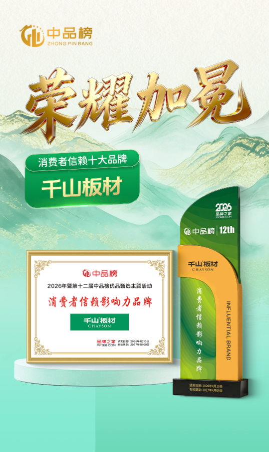 正因如此,千山連續(xù)多年榮獲“消費(fèi)者信賴十大品牌”稱號。這份榮譽(yù),源于每一張訂單的準(zhǔn)時交付,源于每一塊板材的品質(zhì)如一,更源于萬千家庭對千山品牌的長期認(rèn)可。千山將以此為鞭策,繼續(xù)以誠立信、以行踐諾,不負(fù)每一份托付。